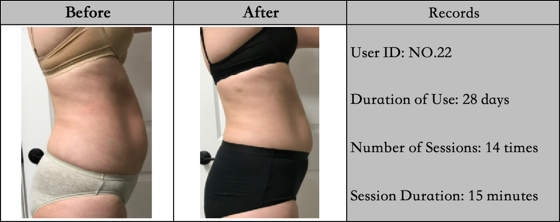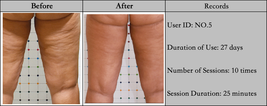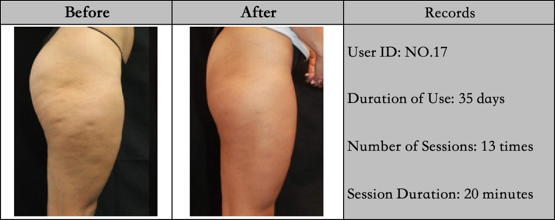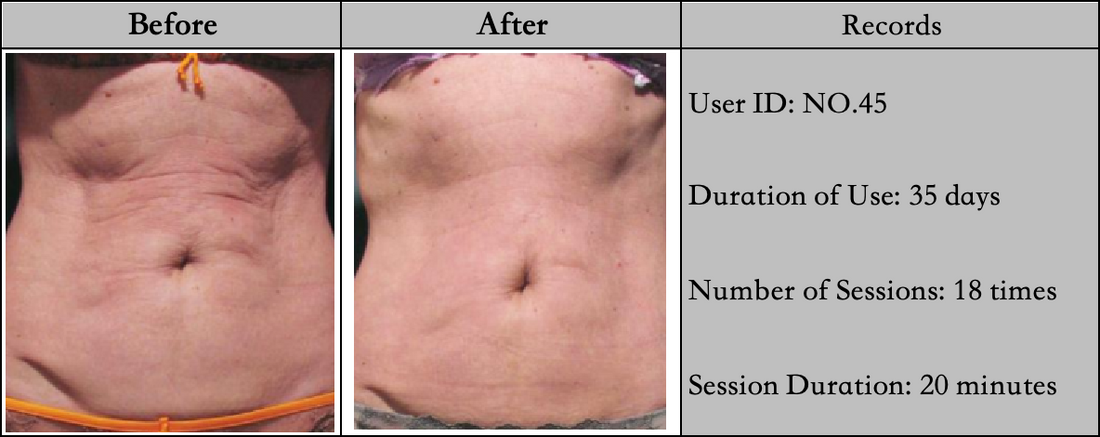 - User 45, being of older age, utilized red light therapy for 35 days specifically on the abdomen. There is a noticeable improvement in the elasticity of the abdominal skin, and cellulite has been visibly reduced.