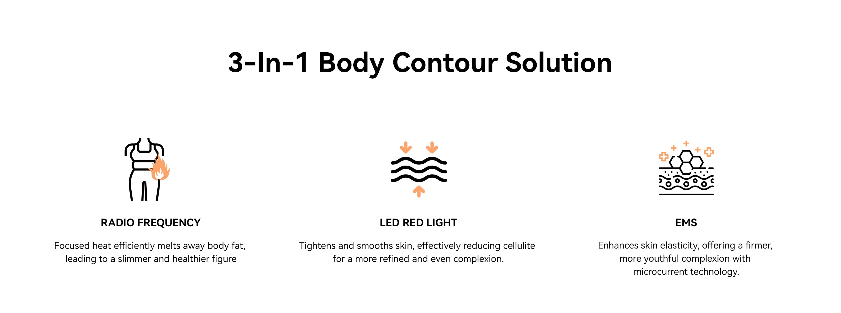 Utilizing RF technology, it promotes the metabolism and breakdown of stubborn fat, delivering the equivalent of a 45-minute gym workout in just 15 minutes. It's efficient and convenient.
