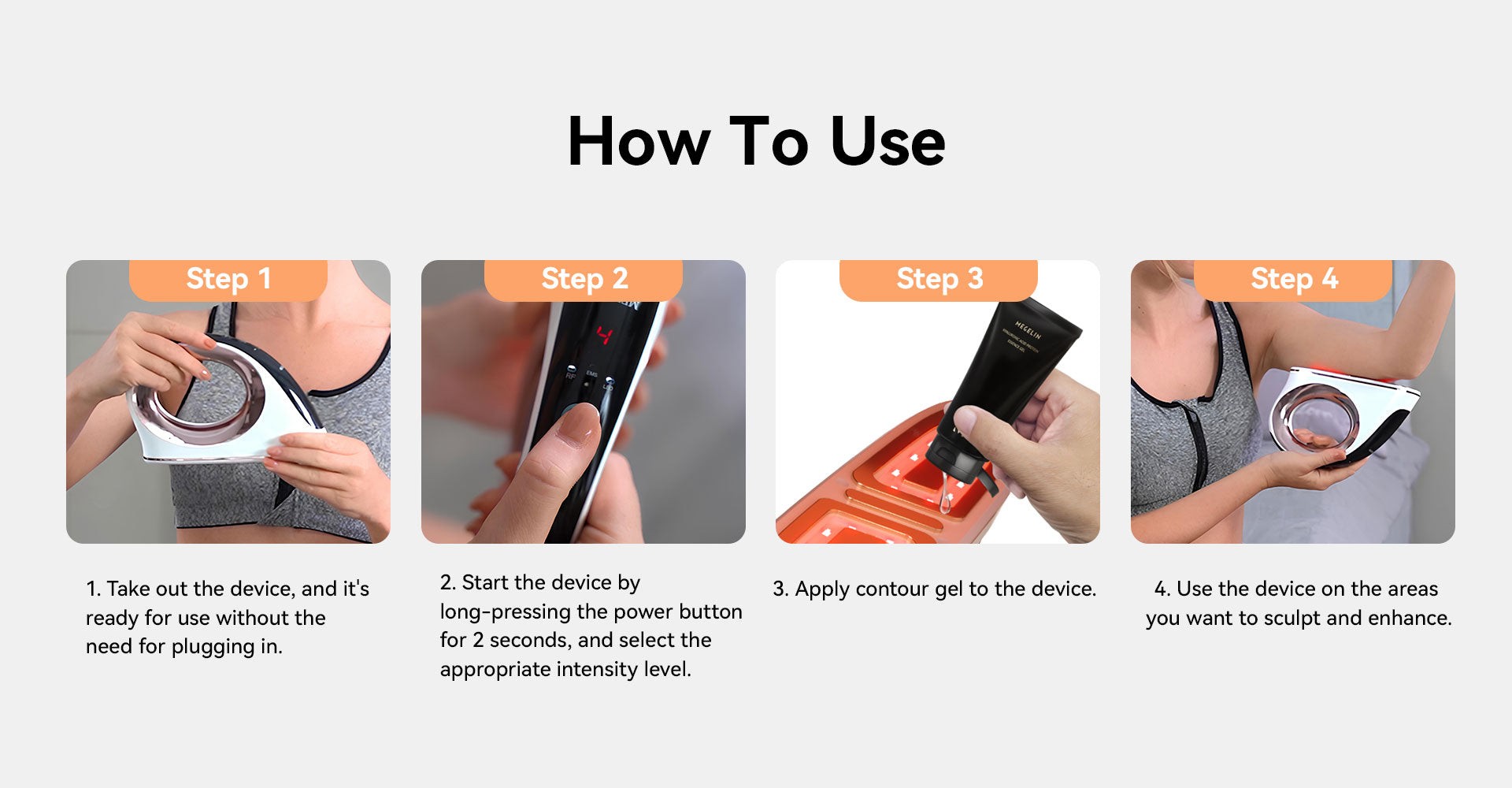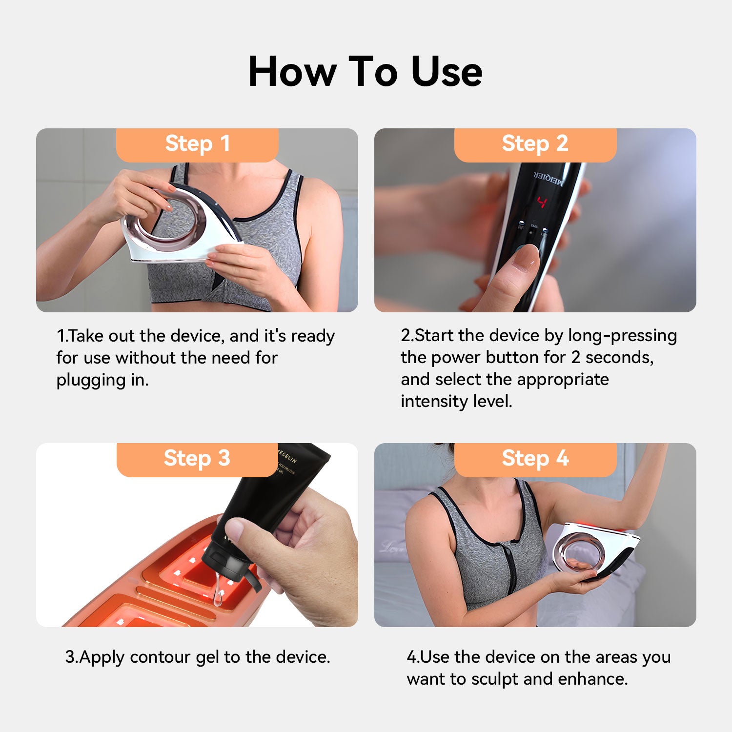 Usage is incredibly simple. Firstly, apply a thin layer of conductive gel to the treatment area, ensuring good contact between the device and the skin. Next, select your desired mode and intensity level. Following the recommended 15-20 minutes per session, gently glide the device over the target area. The device's ergonomic design ensures comfort during use, and its intuitive controls allow you to adjust settings effortlessly as needed. With its user-friendly interface, achieving the desired results becomes easy and hassle-free.