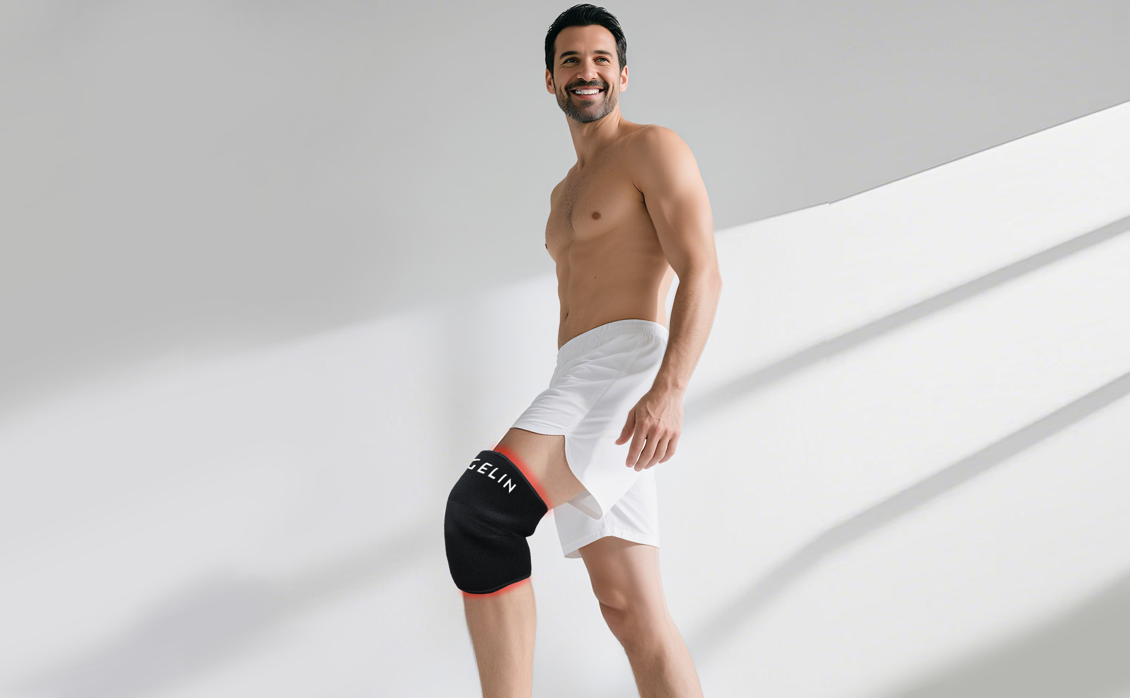 JointLux is designed to wrap comfortably around knees, elbows, and ankles — delivering 360° coverage and deep therapy to both front and back joint surfaces.