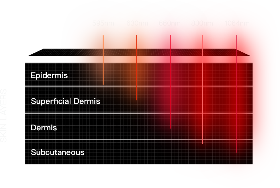 1064nm (Deep Infrared): Deepest penetration, targeting wrinkles and boosting collagen in deeper skin layers.