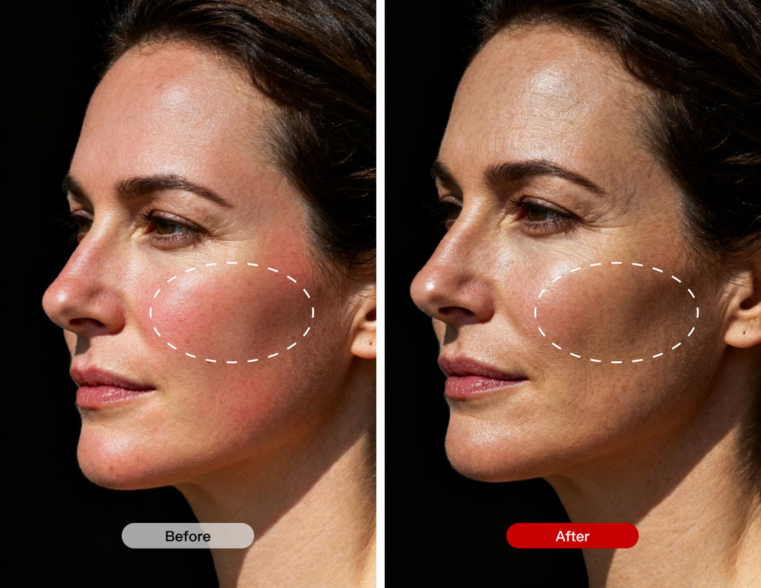 Targets superficial vascular activity to calm visible redness and promote a more even, soothed skin appearance.
