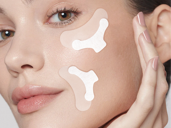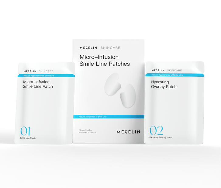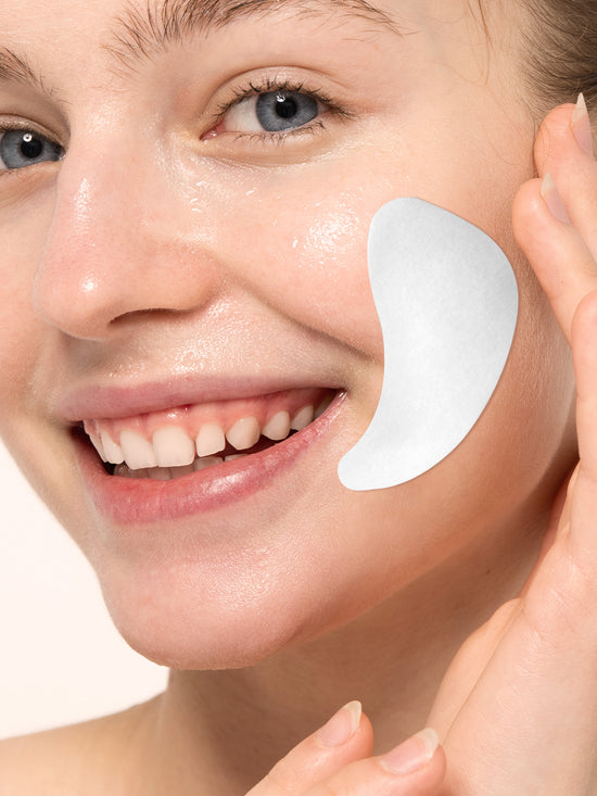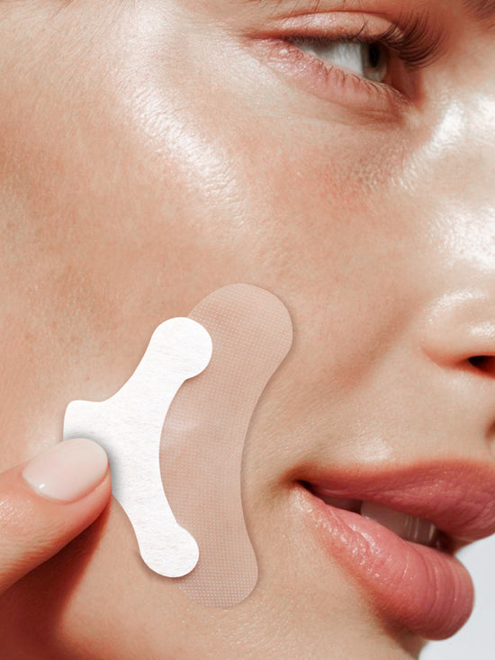 Apply the patch to the targeted smile line area and secure it with the white adhesive.