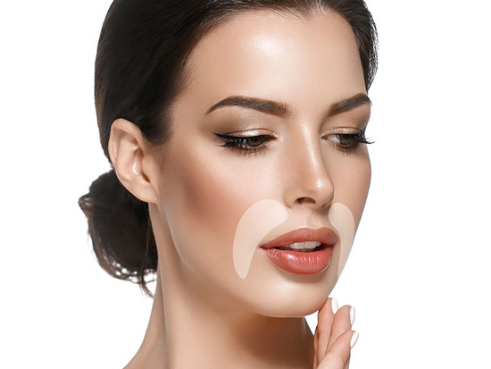 Apply directly over the nasolabial folds (smile lines), starting from the nose toward the corners of the mouth.