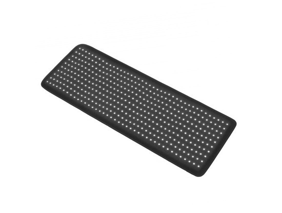 The LED mat is designed to accommodate users of various sizes! The bottom of the pod is open, allowing taller users to extend their feet out if needed. For those who are heavier, the pod has a height of just over a foot, enabling it to wrap comfortably around larger individuals.