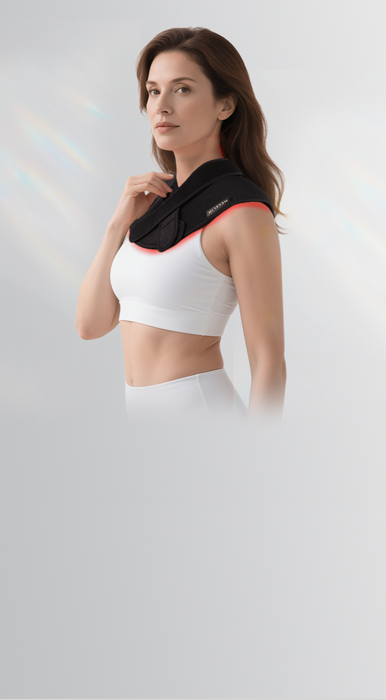 Delivers continuous light to ease tension, repair tissue, and restore neck and shoulder comfort.